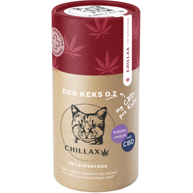 Ein langes, entspanntes und gesundes Katzenleben dank den Katzenminze-Keksen mit CBD von Chillax. Die Kekse fördern die Entspannung, die Mobilität und das Wohlbefinden.